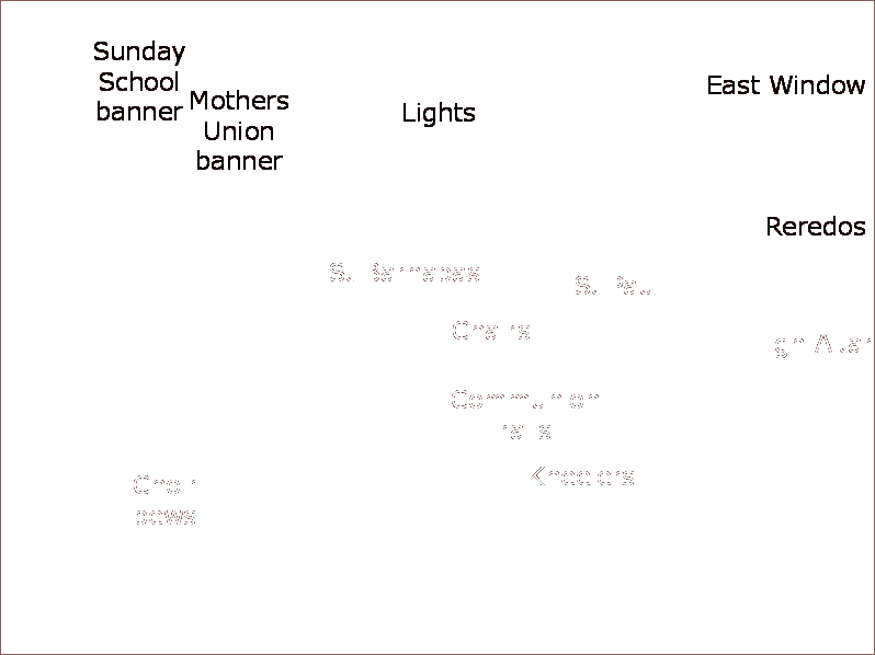 The door between the choir pews and the communion rail leads to the vestries, where the ministers put on their vestments.